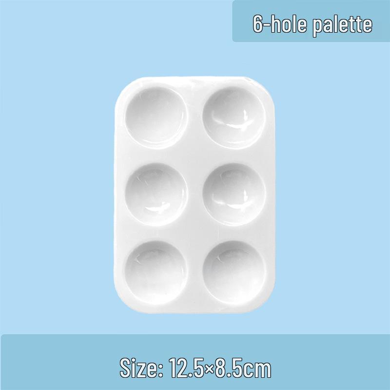 Biała 6-dołkowa prostokątna paleta plastikowa do farb gwaszowych i akwarelowych dla dzieci