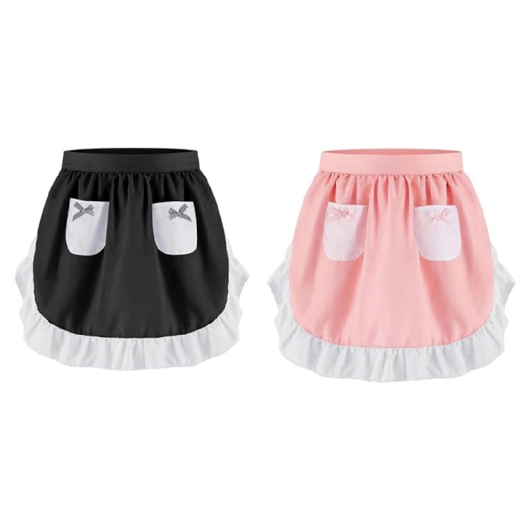 Maid Apron Costume Adjustable Ruffled Maid Apron for Halloween Cosplay Women Kitchen Apron Cooking Apron with 2 Pocket