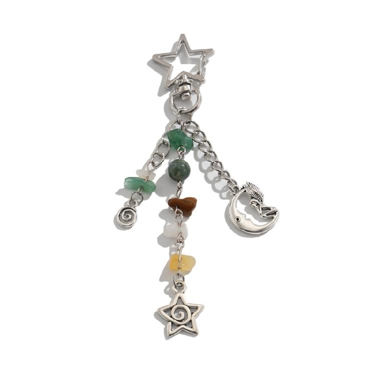 Fashionable Stars Moon Sun Pendant Keyring Holder for Women and Girls Bohemian Colorful Beads Jewelry Accessory