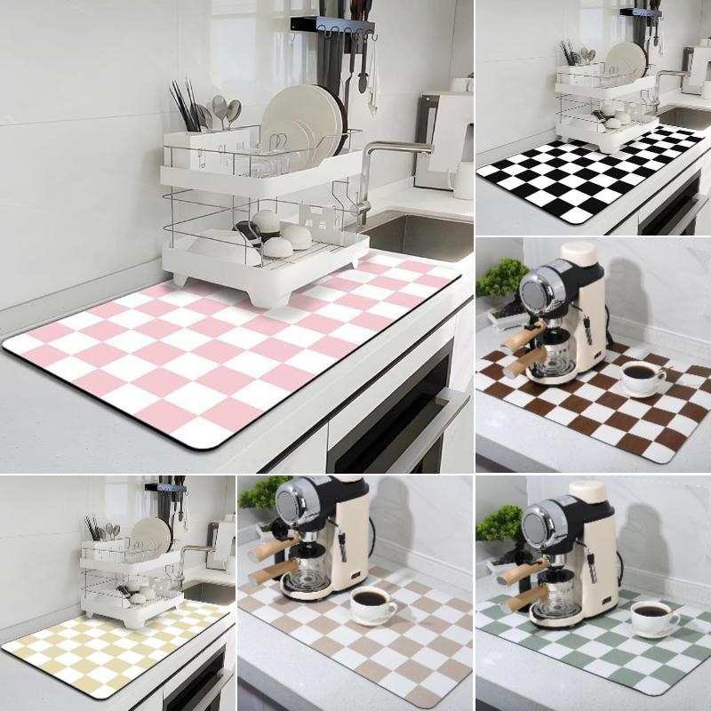 Checkered Print Kitchen Rugs Dish Drying Mat Absorbent Drain Pad Kitchen Carpet Coffee Dish Drainer Draining Mat Tablemat Beauty