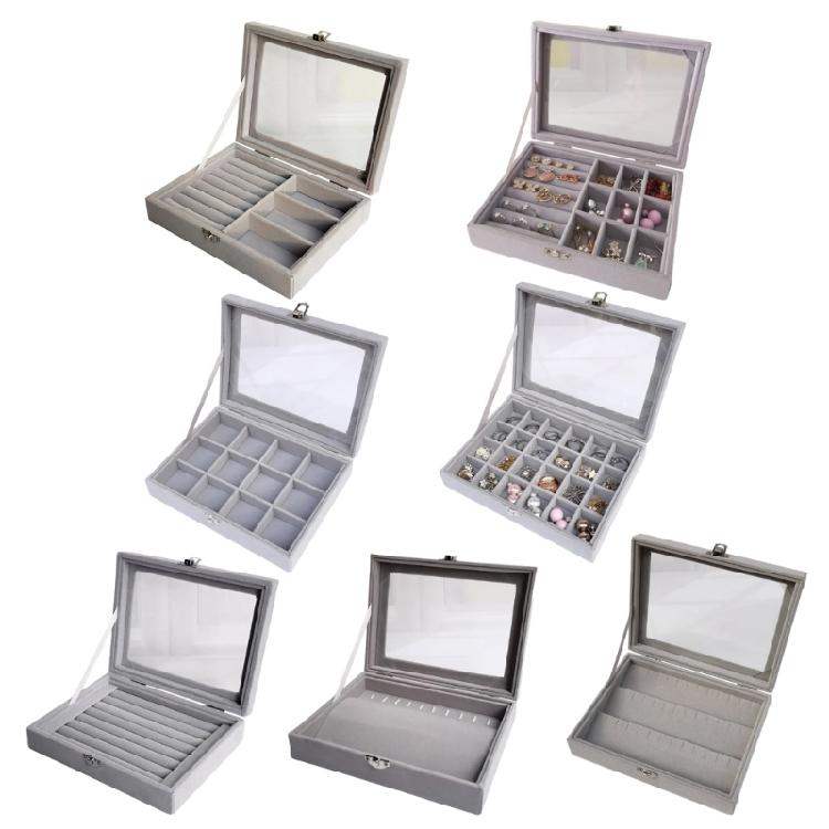 Praktyczne Pudełko do Przechowywania Biżuterii z Szklaną Pokrywką Organizer na Biżuterię Pojemnik na Kolczyki