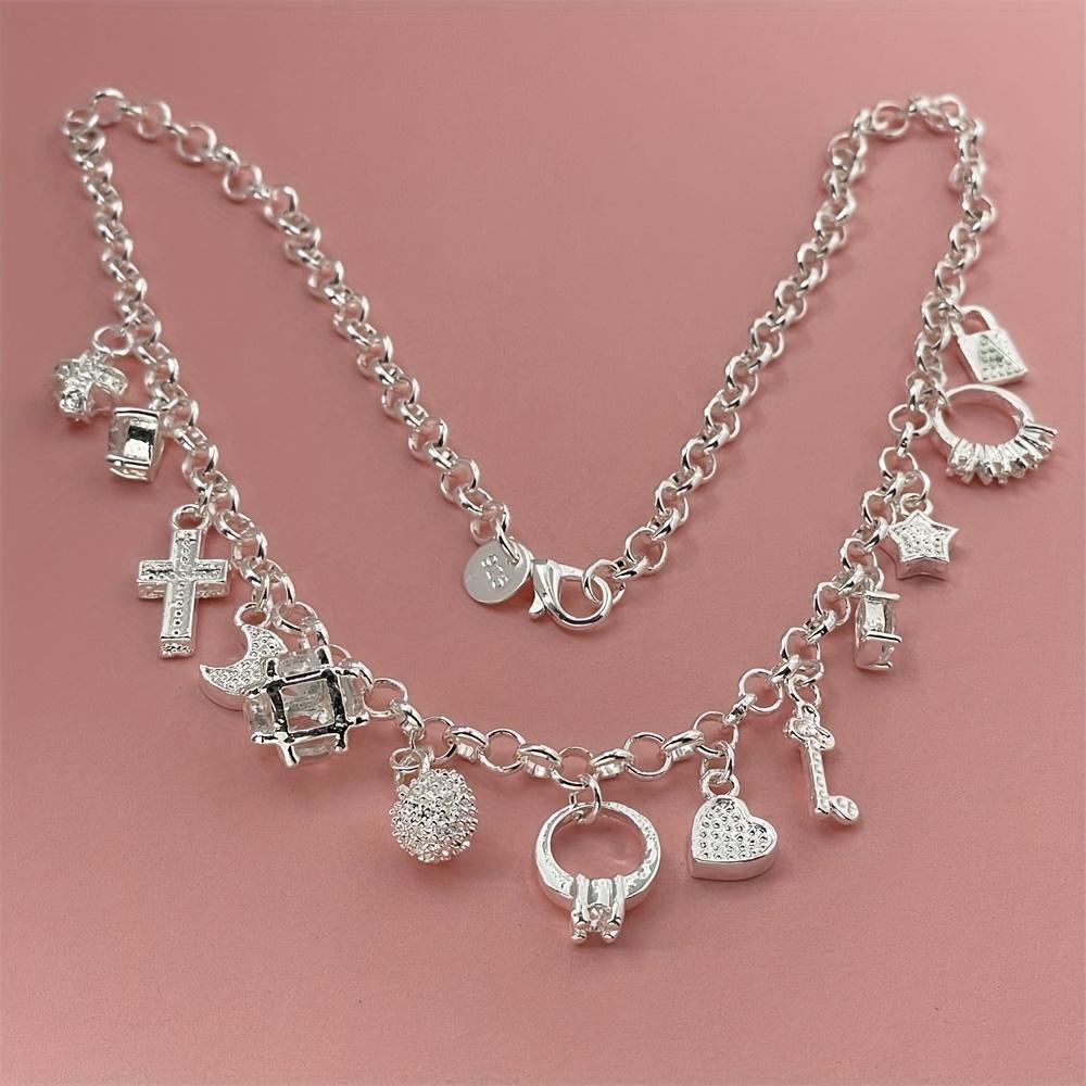 Charms Copper 45cm 18inch Chain Necklace Pendant Multi-Element for women men lady Fashion Cross/Moon/Stars/Lock/Key