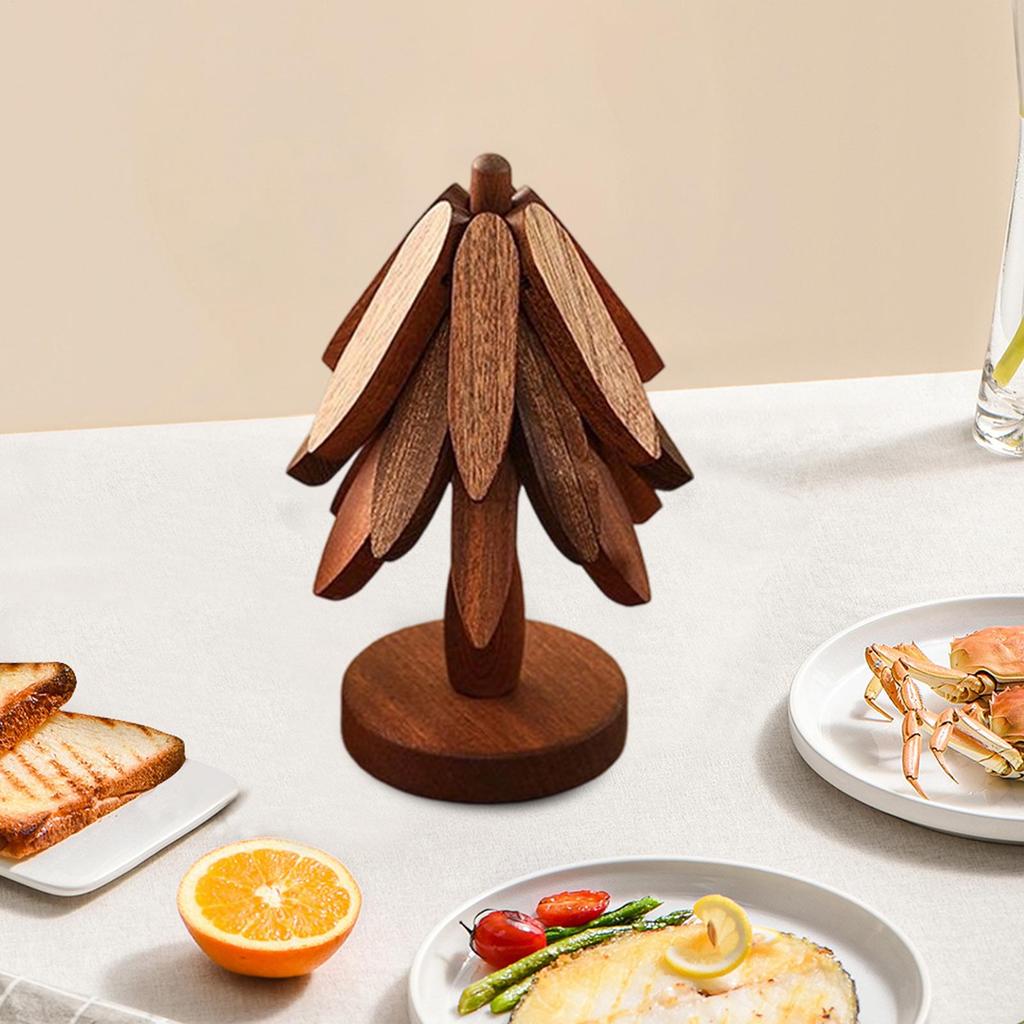 Wooden Trivet Tree Foldable Insulation Tripod Christmas Tree Pot Holder for Hot Dishes Bowls Cups Drinks Teapots Tableware