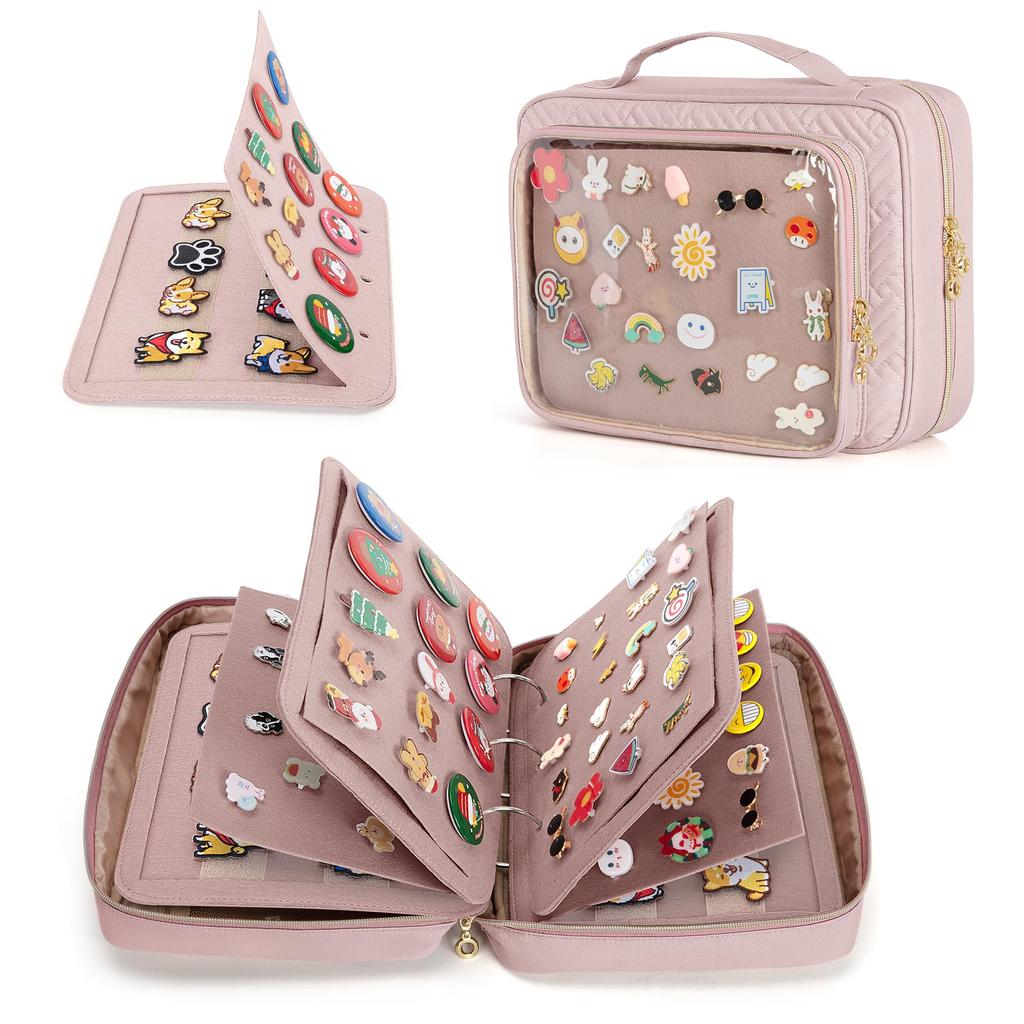 Luxja Badge Storage Bag with Clear Pocket for Badge Pin and Transport of Your Favorite Merchandise Pink Collections, Badges, Files, Display, Storage,