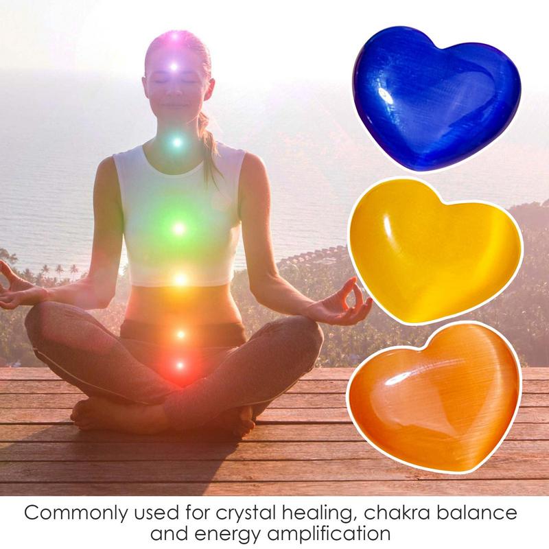 Crystal Heart Stones Heart Shaped Cat Eye Stones Portable Decorative Home Ornament Elegant Desk Decor For Meditation Relaxing