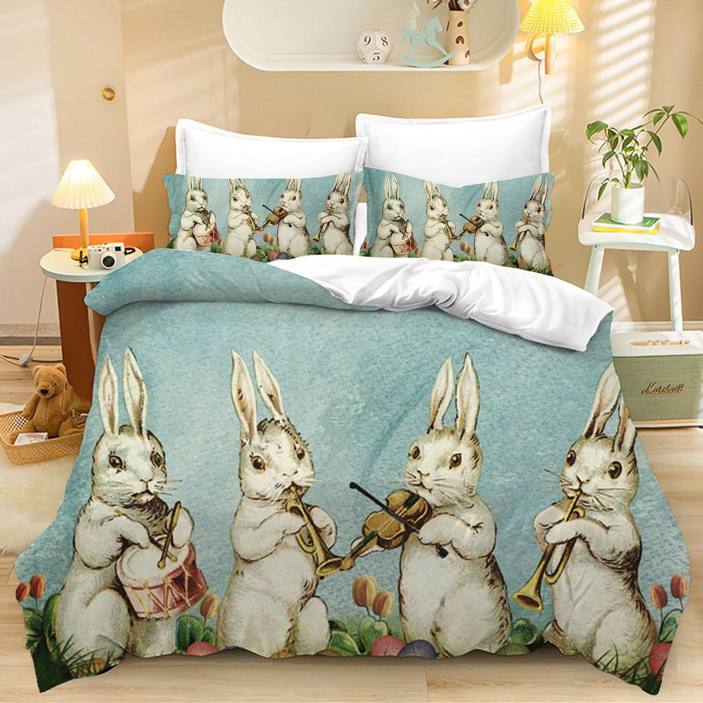 Tekstylia Domowe Trzyczęściowe Królik Wielkanoc Kreskówka Druk Cyfrowy Kołdra Poszewka na Poduszkę Pościel