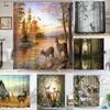 1/3/4 szt. Zestaw zasłon prysznicowych ze wzorem reniferów strumieniowych, Zestaw łazienkowy, Pokrycie na deskę sedesową, Zawiera i antypoślizgowy, z 12 plastikowymi haczykami,