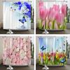 Zasłona prysznicowa z kwiatów tulipana Farma Czerwona ciężarówka Słonecznik Roślina Motyl Krajobraz Łazienka Dekoracyjny Ekran Cortina de la Ducha