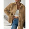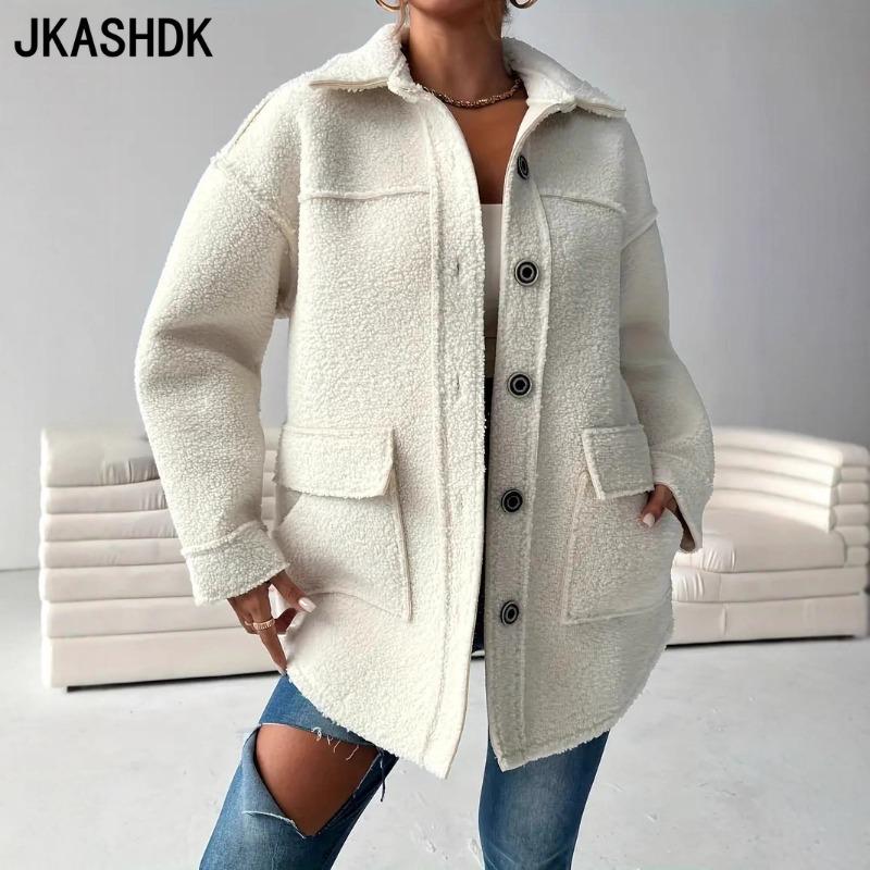 JKASHDK Moda damska Casual Jednokolorowe nadruki Jesienno-zimowe kurtki i płaszcze z długim rękawem i dekoltem POLO