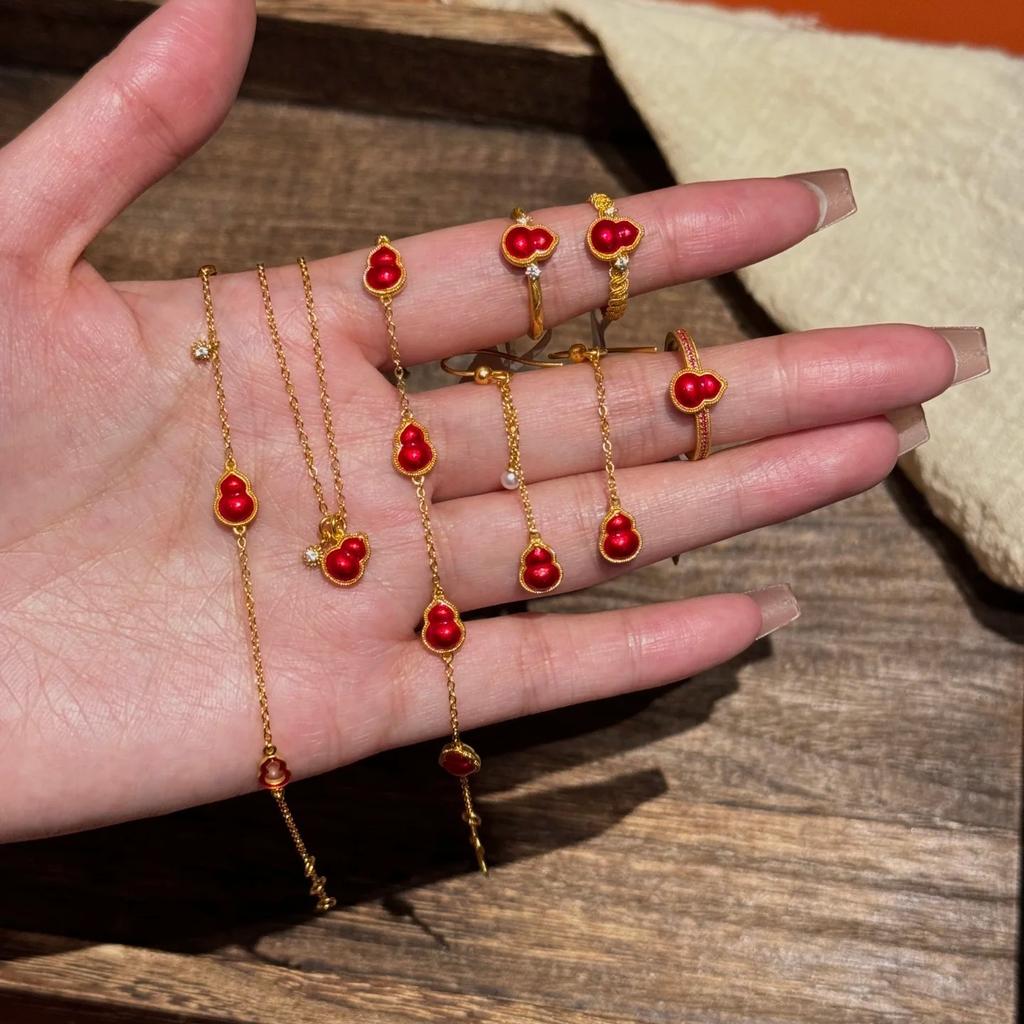 Silk Red Gourd Drip Glaze Necklace Ring Earrings Bracelet Temperament Versatile Lucky Red Jewelry Set