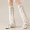 Elegant Ribbed Knit Arm Sleeves Leg Warmers for Women Breathable Sweet Bowknot Ruffle Trim Sun Protective Arm Leg Covers White rice bow