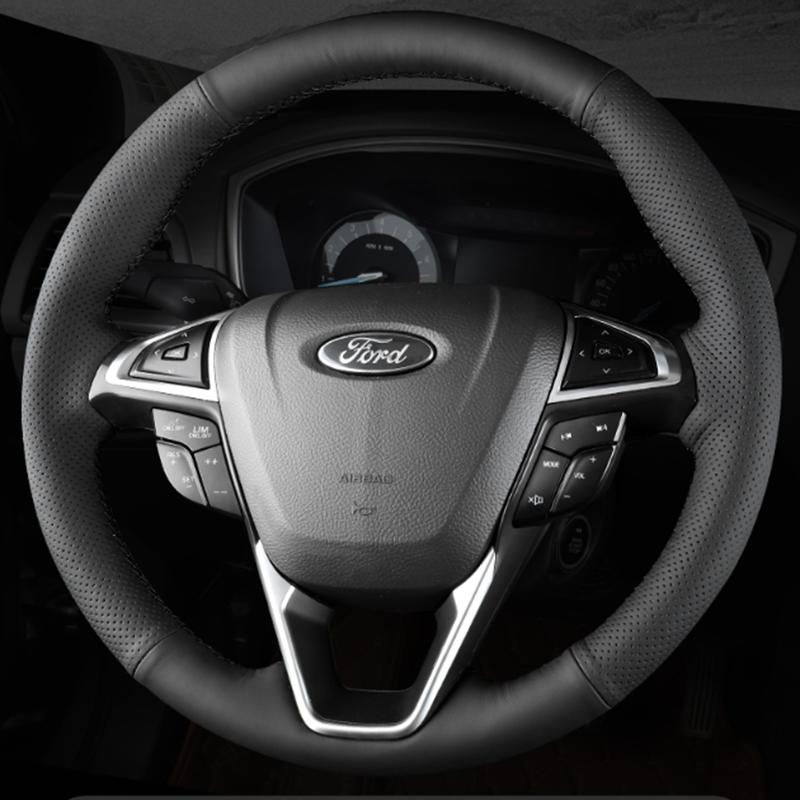 PersonalizowanaPokrowiec na kierownicę samochodu DIY ze skóry mikrofibry Ręcznie szyty Dla Dla Ford Mondeo Fusion 2013- EDGE 2015-
