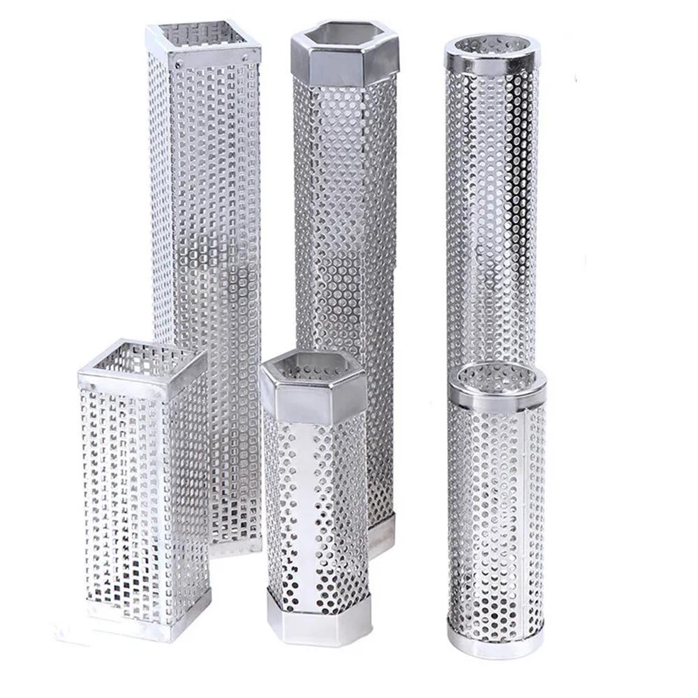6/12inch BBQ Stainless Steel Accessories Meshes Round Sqaure Perforated Mesh Smoker Tube Grill Generator Smoker Filter Tool