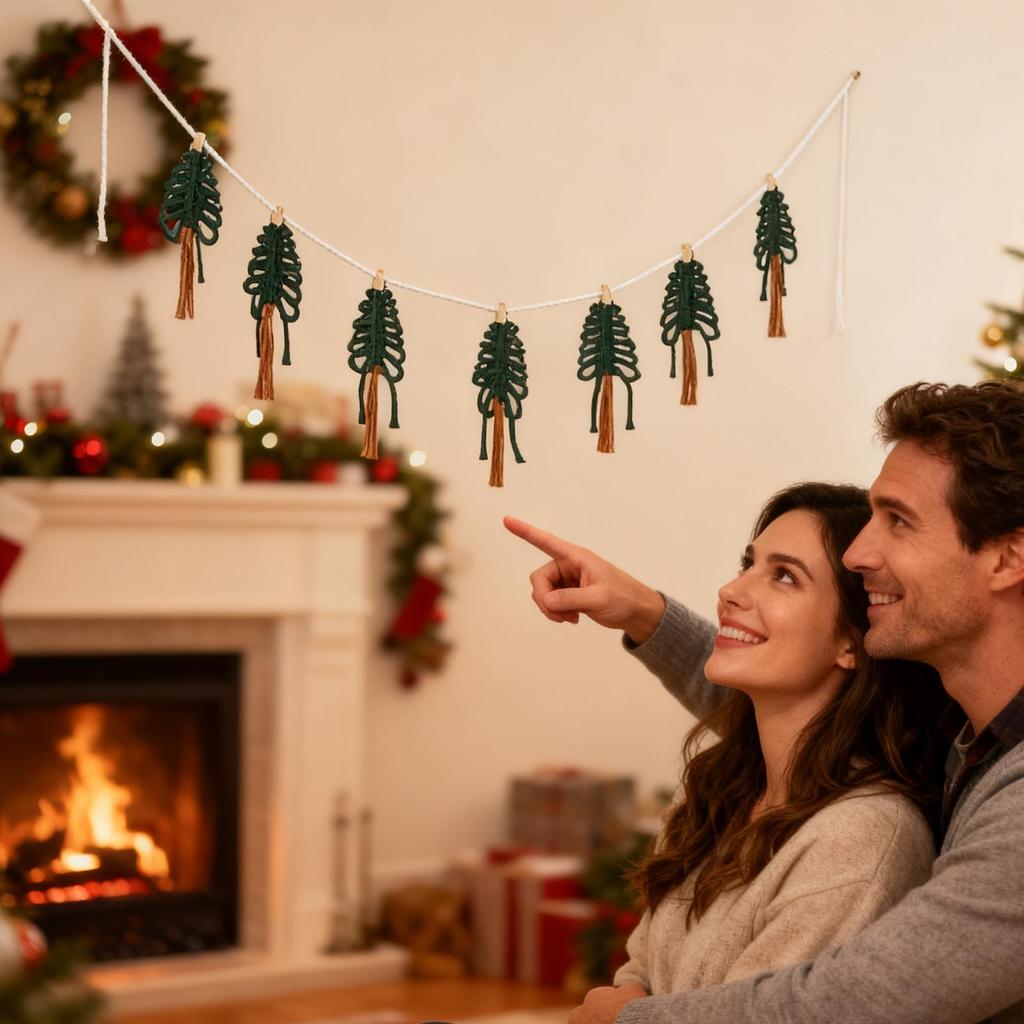 Boho Christmas Decor Macrame Christmas Decor Cotton Rope Handmade Wreath Tapestry For Living Room Doorway Bedroom Entryway Porch