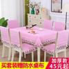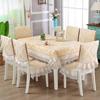 Light Luxury Dining Table Cloth Chair Cover Thickened Cushion European Style Large Flower Table Cloth Wave Lace Chair Cushion