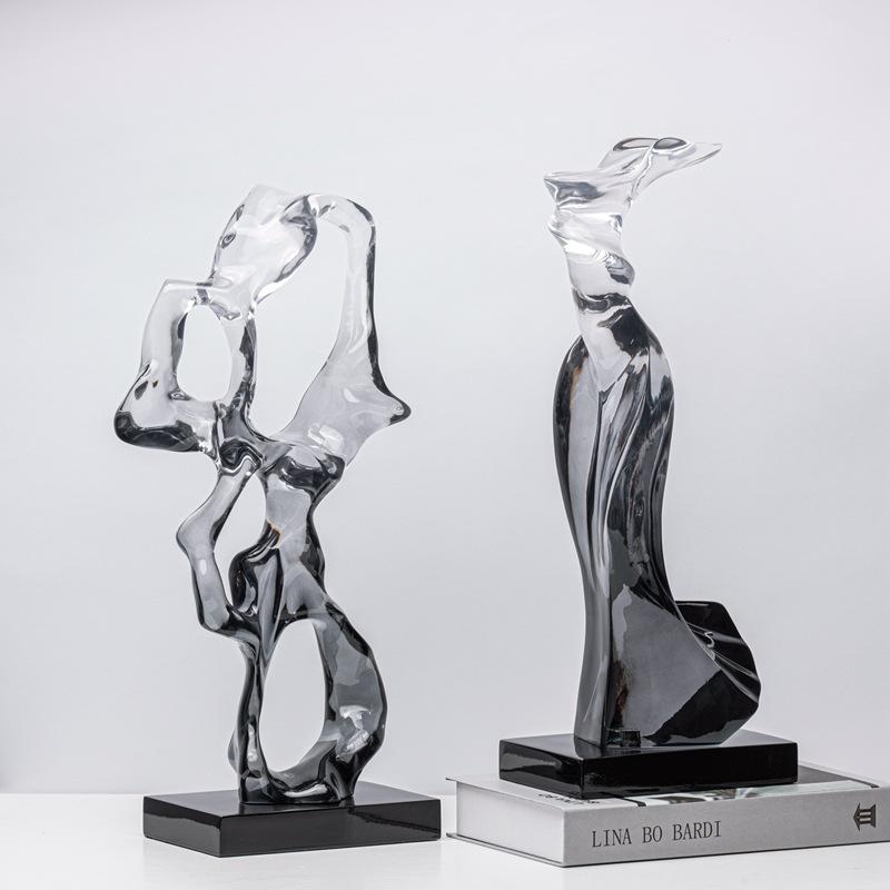 Creative Geometric Transparent Resin Sculpture Marble Statue Transparent Gradient Hollowed-out Ornaments Home Decoration