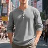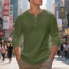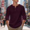Men's Jacquard Small Square Buckle Henley Long Sleeve Retro Base T-shirt