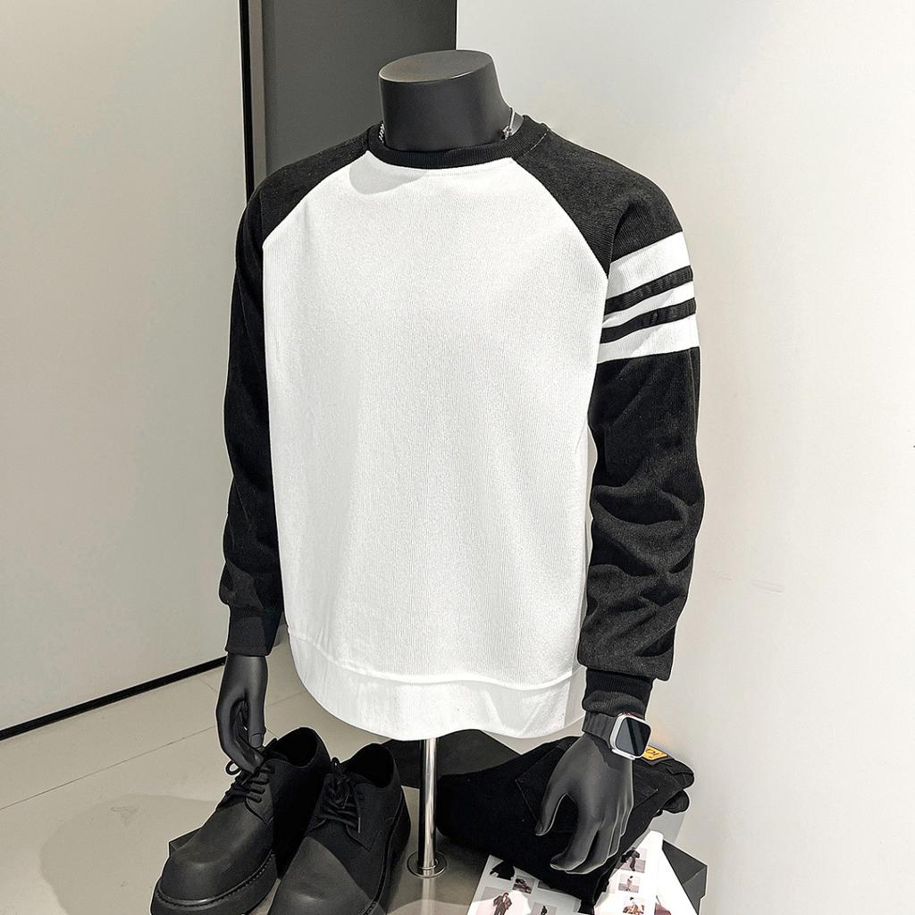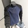 Pullover bottoming shirt men's 2025 fashion color matching crew neck sweater men's versatile striped knitted sweater