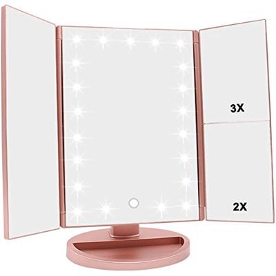 Makeup Vanity Mirror with LED Lights, 3 Level Magnification, Touch Control, Portable Folding Design, Battery & USB Powered (Rose