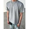 Blaexit American-Style Patchwork Deconstructed Old Money Style Straight Shoulder Short-Sleeve Men's Space Cotton Cleanfit Gray Cropped T-Shirt