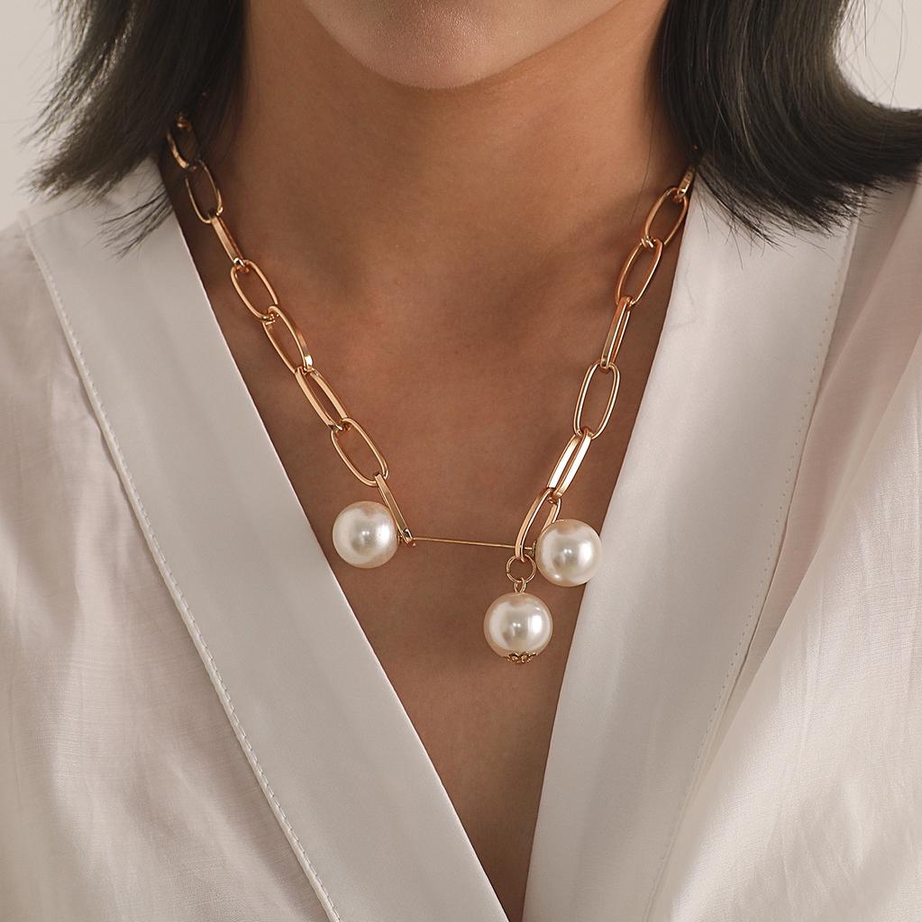 Europejski i amerykański, kształt kłódki, gruba łańcuszkowa klamra z pereł, zawieszka do naszyjnika, damski, spersonalizowany punkowy, przesadzony, modny naszyjnik