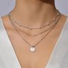 Simple imitation pearl chain collarbone chain female, multi-layer fashionable metal disc pendant necklace