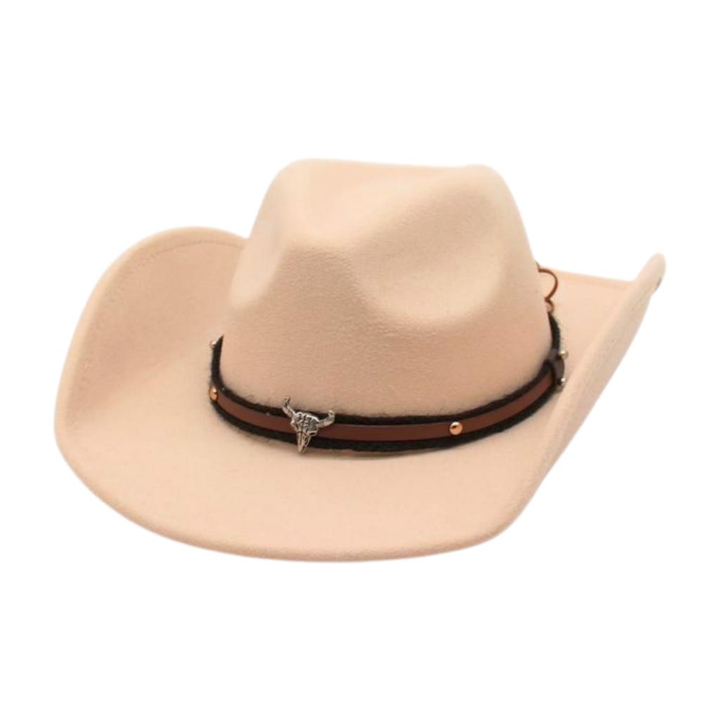 Peach Heart Western Cowboy Upturned Top Hat Ethnic Wind Cow Head Woolen Felt Hat Stage Prop Hat