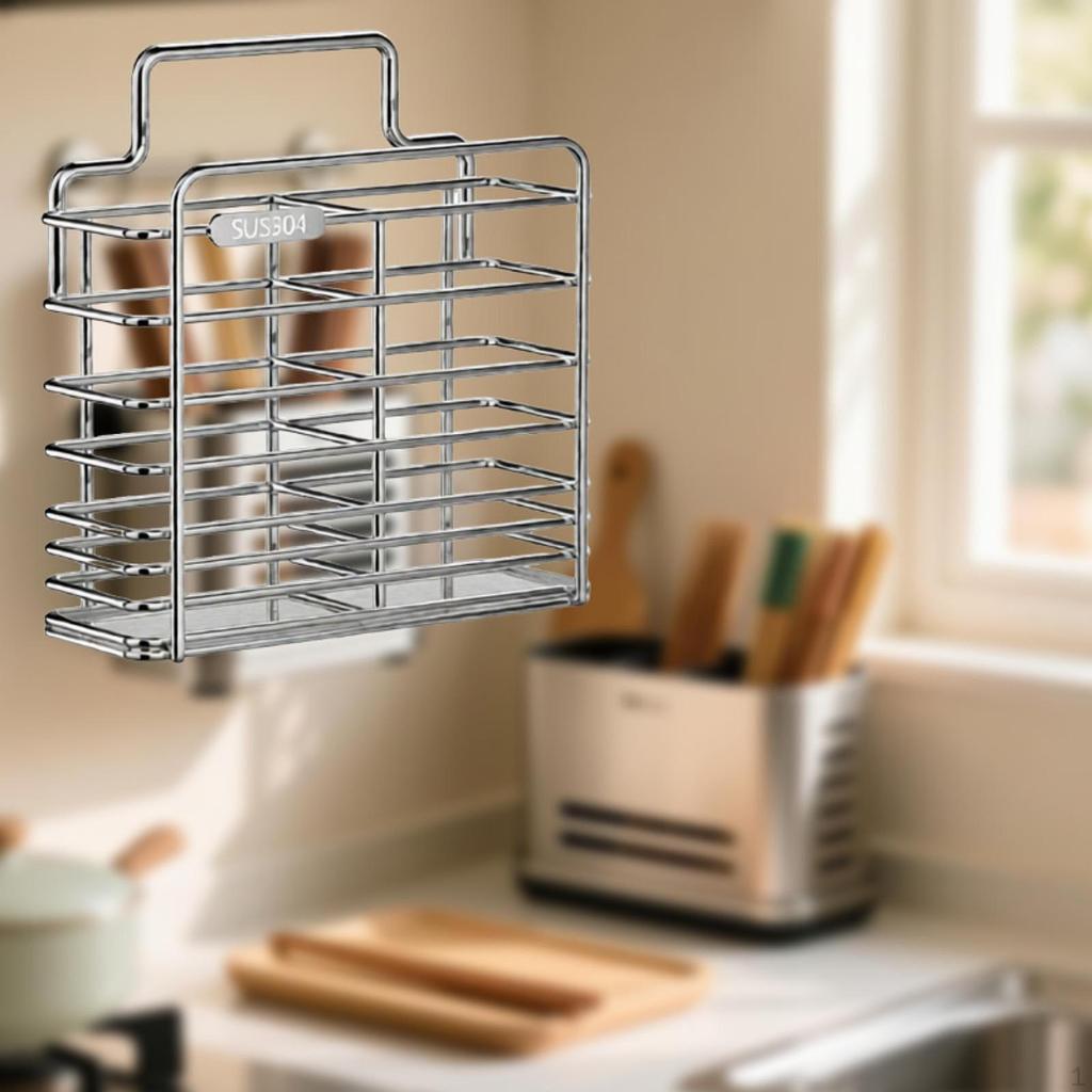 Chopsticks Holder Kitchen Utensils Wall Mount Household Utensil Cage with Drain Tray for