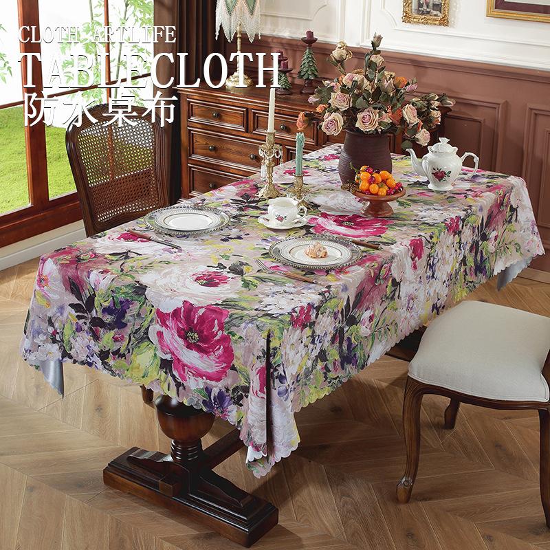 American Oil Painting Style Tablecloth Waterproof And Oil-Proof Leave-In Light Luxury High-End Art Tablecloth Fabric Rectangular Dining Table Cloth