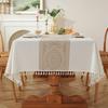 Coffee Color Polyester Jacquard Retro Flower Rhombus Fringed Tablecloth Coffee Table Dining Table Cloth Cover Towel