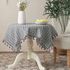 Cotton And Linen Small Fresh Navy Blue Small Flower Round Tablecloth Household Living Room Homestay Decoration Fringed Tablecloth