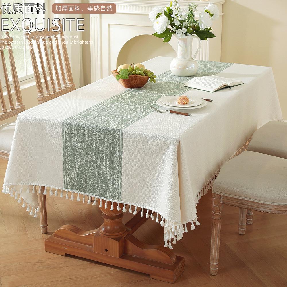 Nordic Light Luxury Tablecloth Imitation Cotton And Linen Fringed Long Dining Table Cloth Coffee Table Christmas Dust Tablecloth Mat
