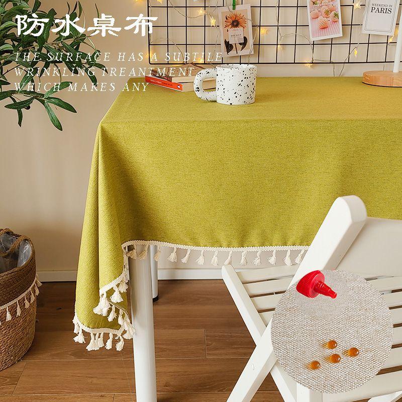 Cotton And Linen Solid Color Waterproof Tablecloth Fringed Senior Sense Student Desk Cloth Atmosphere Tablecloth Art Decoration