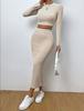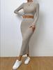 Otul się przytulnym szykiem dzięki temu wszechstronnemu prążkowanemu dzianinowemu zestawowi.. Krótki top z długim rękawem zapewnia wygodne, elastyczne dopasowanie, a spódnica ołówkowa z wysokim stanem oferuje elegancką, podkreślającą figurę sylwetkę.. Elegancka prążkowana faktura dodaje odrobinę wyrafinowania, dzięki czemu ten dwuczęściowy zestaw jest idealny zarówno na codzienne wyjścia, jak i na bardziej dopracowane stylizacje.. Dostępny w klasycznych odcieniach, jest to łatwy sposób na stworzenie skoordynowanego, modnego stroju przy minimalnym wysiłku.
