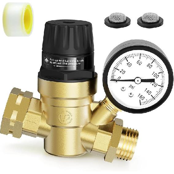 Regulator Ciśnienia Wody w Kamperze Mosiądz Bezołowiowy Regulowany Reduktor Ciśnienia Wody Ze Wskaźnikiem i Filtrem Siatkowym Zastosowanie w Systemie Wodociągowym Kampera, Przyczepy, Kampera