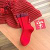 Socks Heel Cloth Label Big Red Medium Tube Socks Trendy Retro Color Matching Stacking Socks New Year'S Cotton Socks