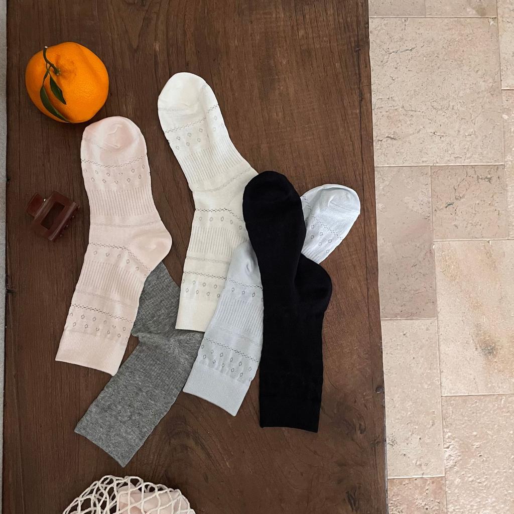Korean Summer Thin Socks Vertical Strip Love Mesh Carved Air Tube Socks Breathable And Simple Solid Color Stacked Socks