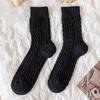 Wool Socks Children'S Season Mid-Tube Socks Versatile Solid Color Retro Twist Pattern Fleece Thickened Warm Pile Socks Women