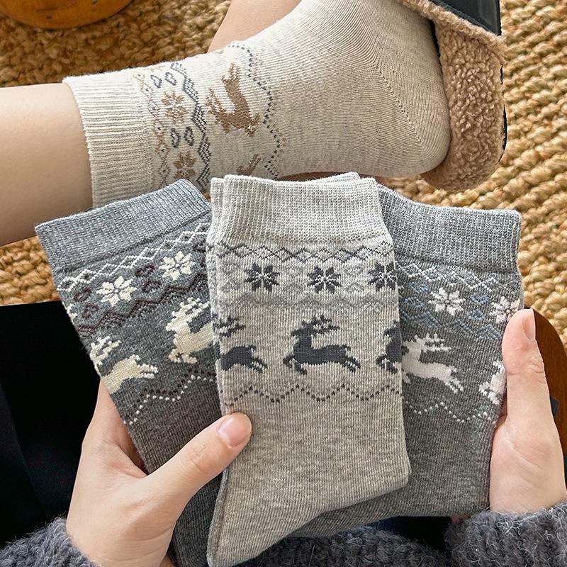 Socks Pure Cotton Tube Socks Season Retro Small Snowflake Elk Cotton Boneless Stacking Socks