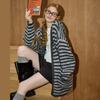 Coolhut Lazy Striped Mid-Length Cardigan Knitted Jacket Winter Warm New Women's Sweater