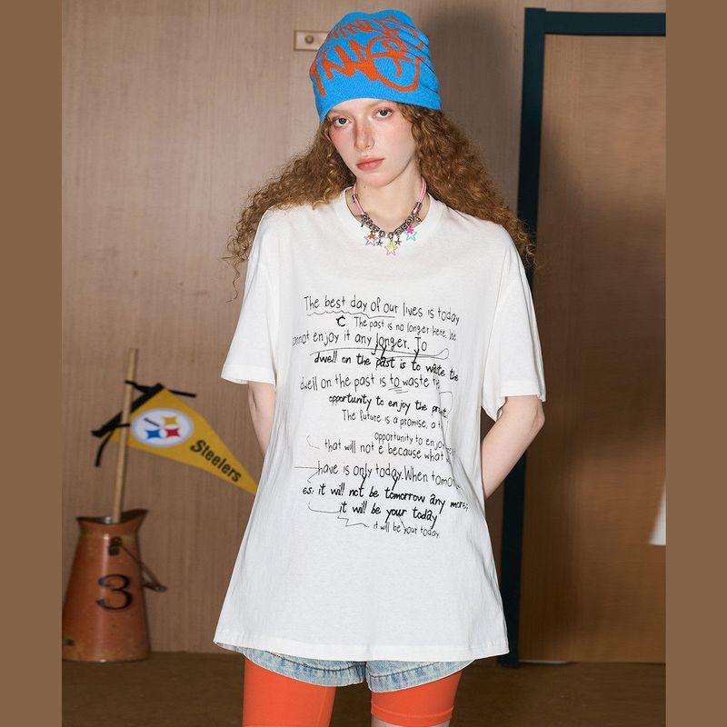 Coolhut2025 Summer Letter Print Loose Short-Sleeved T-Shirt Women's Casual Top Versatile