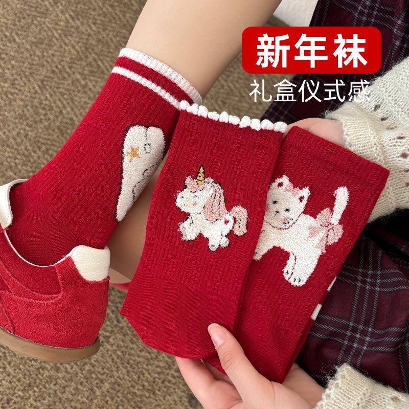 2026 New Year'S Red Socks Medium Tube Socks Cute Combed Cotton Wedding Socks