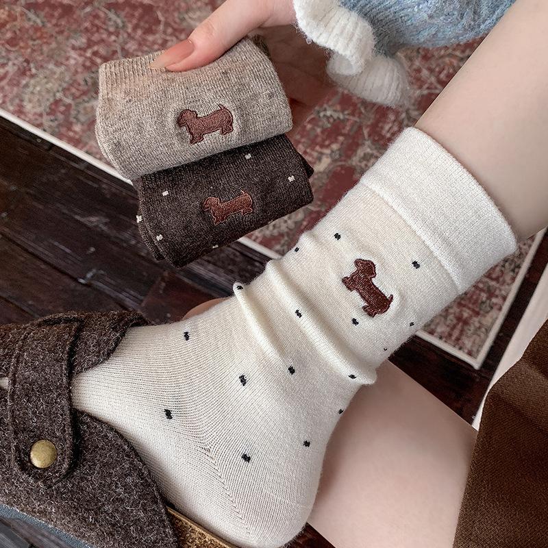 Cashmere Socks For Women Thickened And Warm Zodiac Socks Polka Dot Embroidery Vintage Slimming Pile Socks