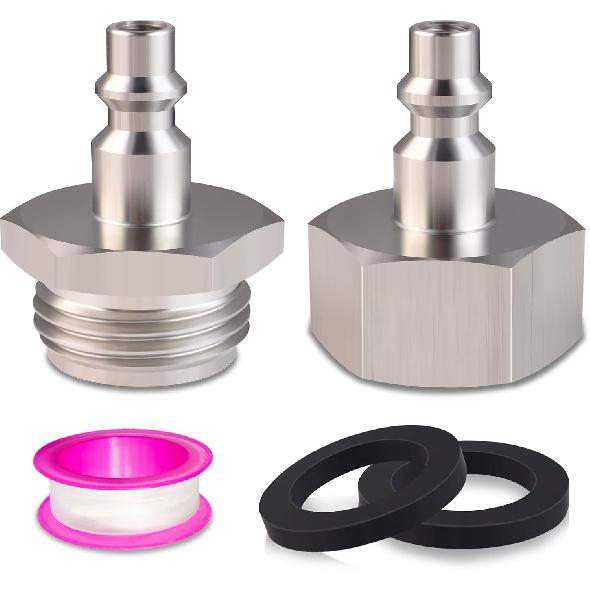 Boltigen RV Blow Out Winterizing Adapter, Stainless Steel Sprinkler Blowout Plug, 1/4 Air Compressor Quick Connect To 3/4 Garden Hose Thread, RV