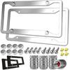 Chrome License Plate Frame Made Of Zinc Alloy Metal, Universal Car Accessories,1 Pack License Plate Holder Never Rust And Unbreakable With Metal