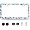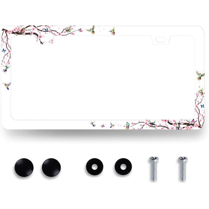 Hummingbird License Plate Frame Cherry Blossom Pink Flower License Plate Holder Colorful License Plate For Car Decoration Stainless Steel Bird Car