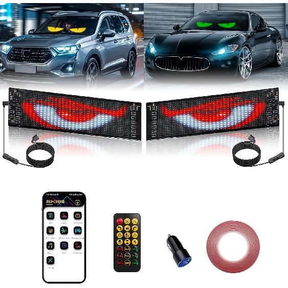 2PCS LED Eyes For Car Windshield, 13.7"X4" Devil Eyes Light For Cars, Programmable Soft Screen LED Sign With APP Control And Remote Controller