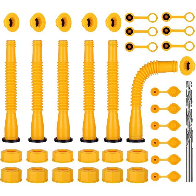 Gas Can Spout Replacement, Gas Can Nozzle Replacement, Upgraded (6Kit-Yellow) Includes 37 Accessories, Flexible Pour Nozzle Suitable For Most