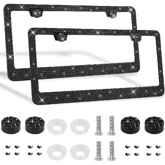 2 Pack Bling License Plate Frames Premium Sparkly License Plate Frame For Women Durable Black Bling Car Accessories
