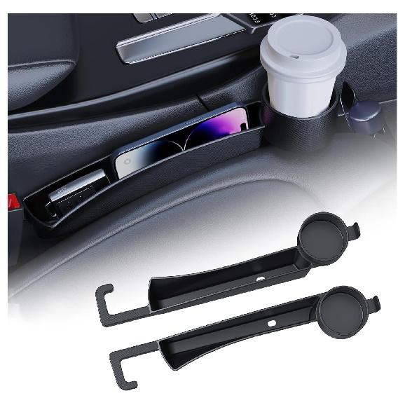 2025 New Car Seat Gap Filler Organizer,2PCS Multifunctional Car Side Seat Gap Filler With Cars Cup Holder&Hook,Universal In Between Cars Seats